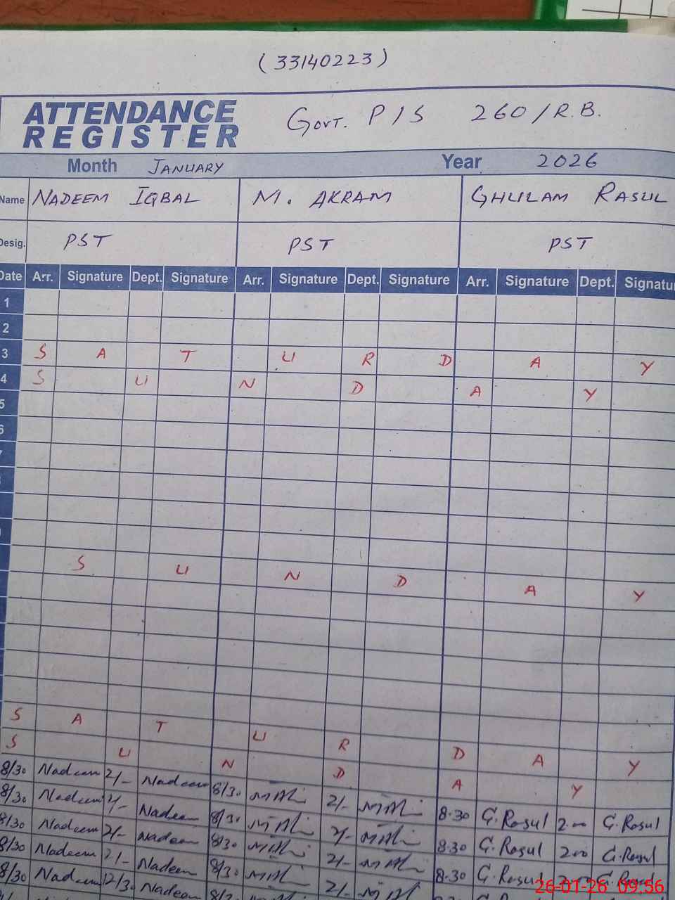 | Monitoring Date: 26-01-2026 | Start Time: 26-01-2026 09:20 AM | End Time: 26-01-2026 09:57 AM | Name of MEA: AR**** HA**** | |
