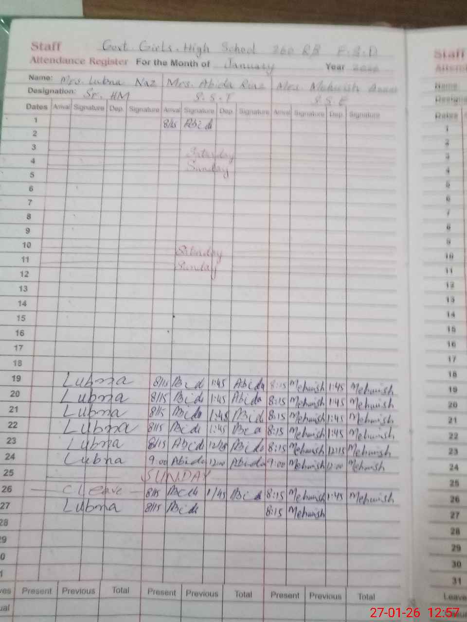 | CNIC | Full Name | Designation | R/C | Absence During Last Calender Month |