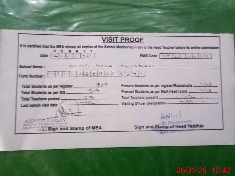 | EMIS Code: 37210026 | Name of School: GGHS KALA GUJRAN | |||