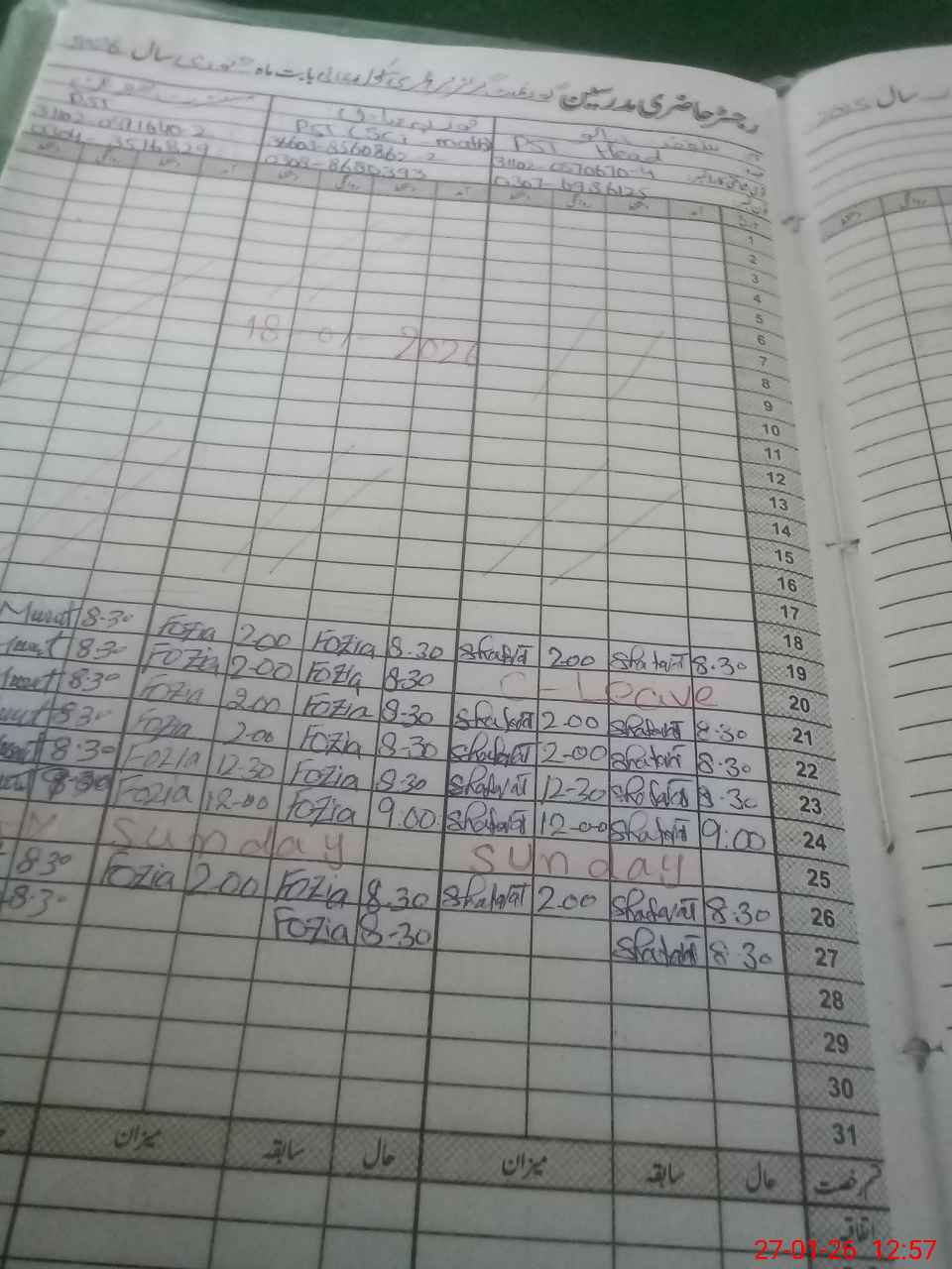 | Leave | Duty | Absent | Maternity | Medical | Ex- Pak |
