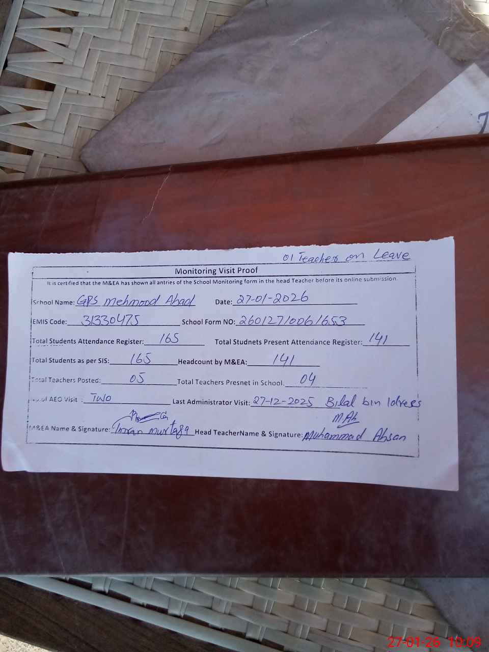 | EMIS Code: 31330475 | Name of School: GPS MAHMOOD ABAD | |||