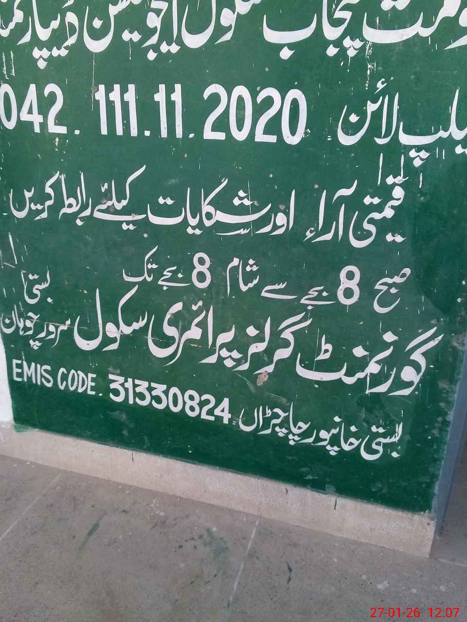 | EMIS Code: 31330824 | Name of School: GGPS SARWAR CHUHAN | |||