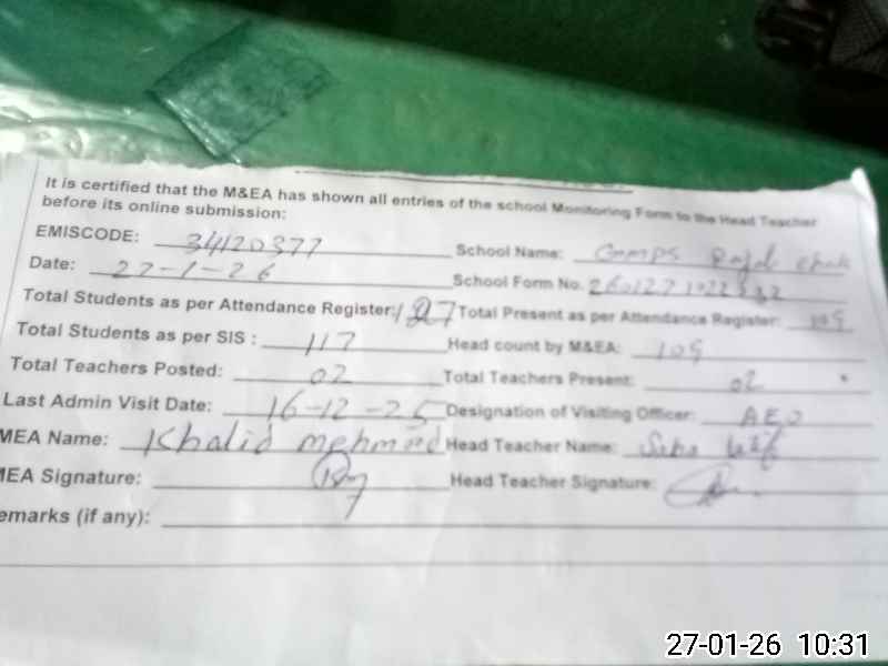 | EMIS Code: 34120377 | Name of School: GMPS RAJAB CHAK | |||