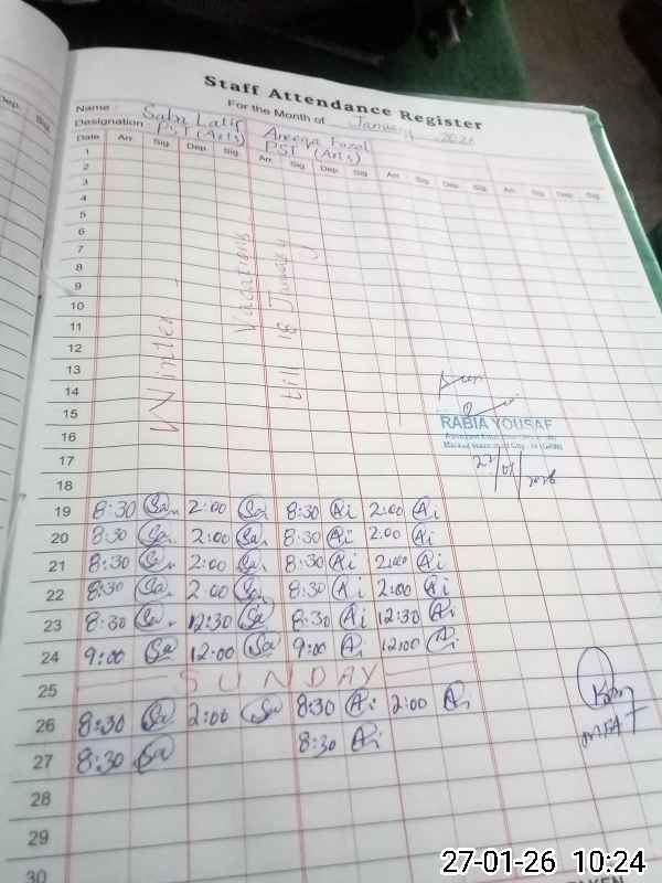 | Name: Sa**** La**** Designation: (School Headmaster's/Headmistress's) ESE Arts Phone/Cell Number: 03**** |