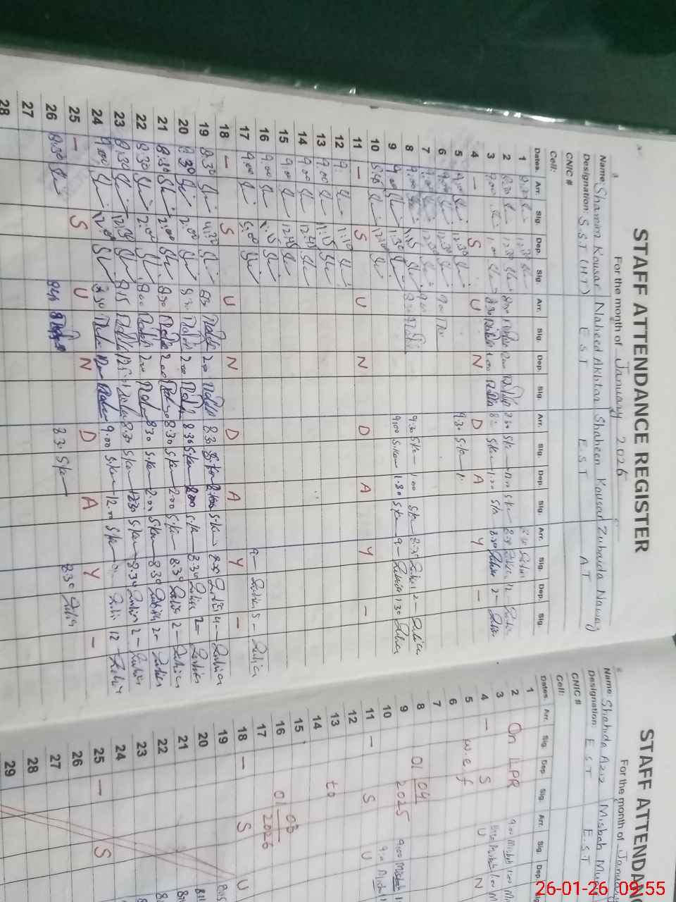 | CNIC | Full Name | Designation | R/C | Absence During Last Calender Month |