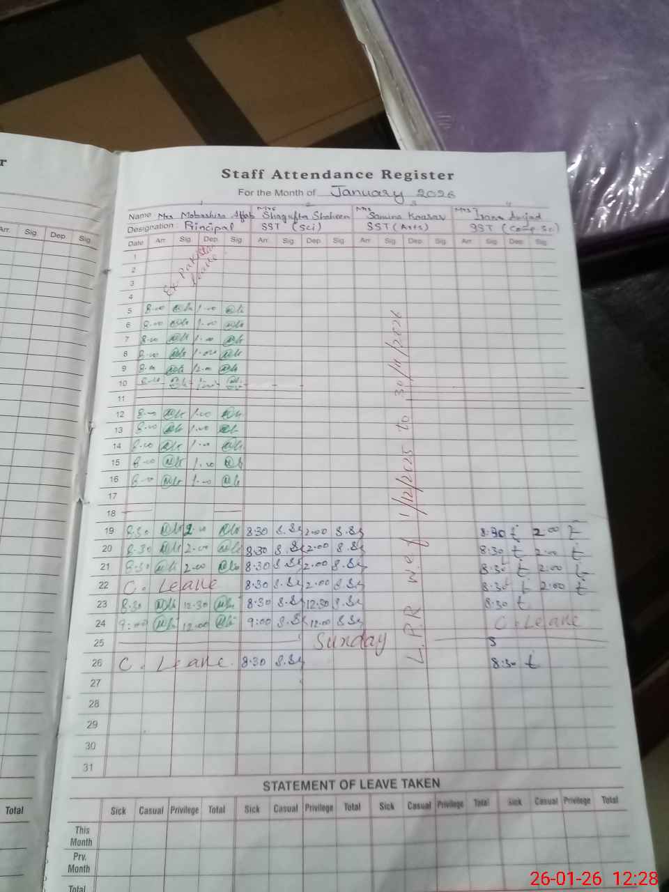 | 35**** | Mo**** Af**** | PRINCIPAL | Regular | 0 | 0 | 0 | 0 | 0 | 0 | 0 | 0 | 0 | Casual |