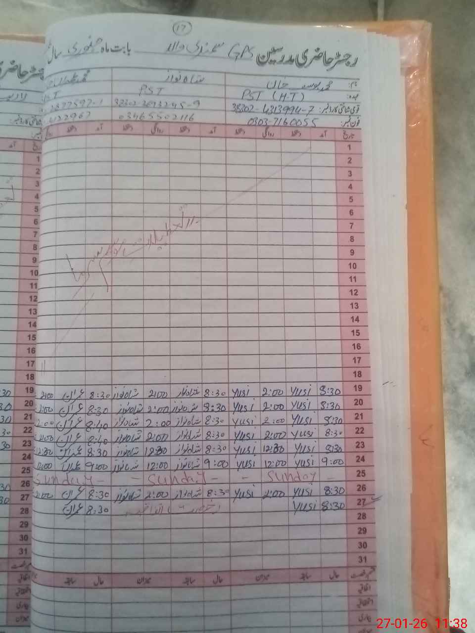 | 38**** | Sh**** Na**** | PST Science/Maths | Regular | 0 | 0 | 0 | 0 | 0 | 0 | 0 | 0 | 0 | Casual |