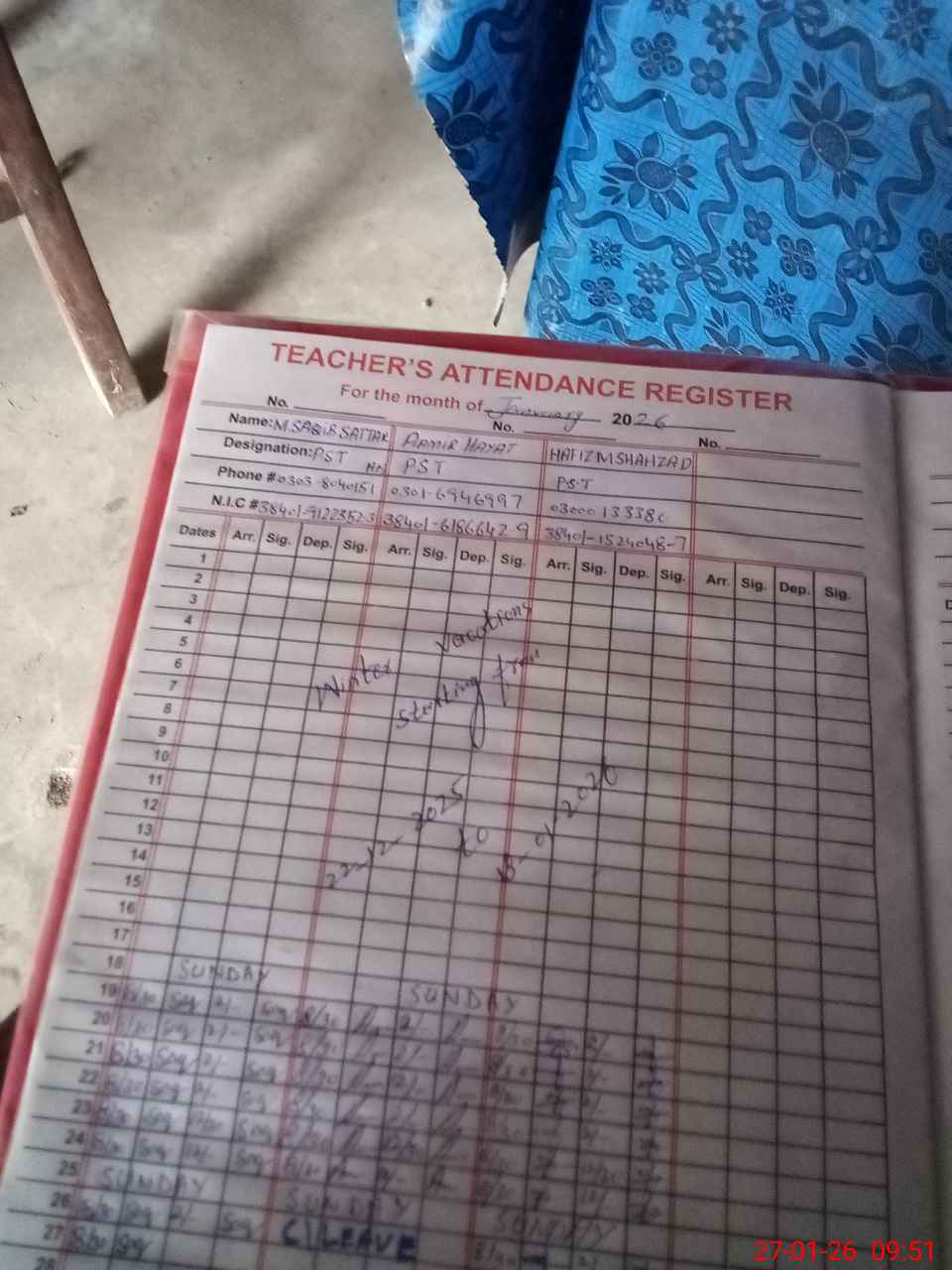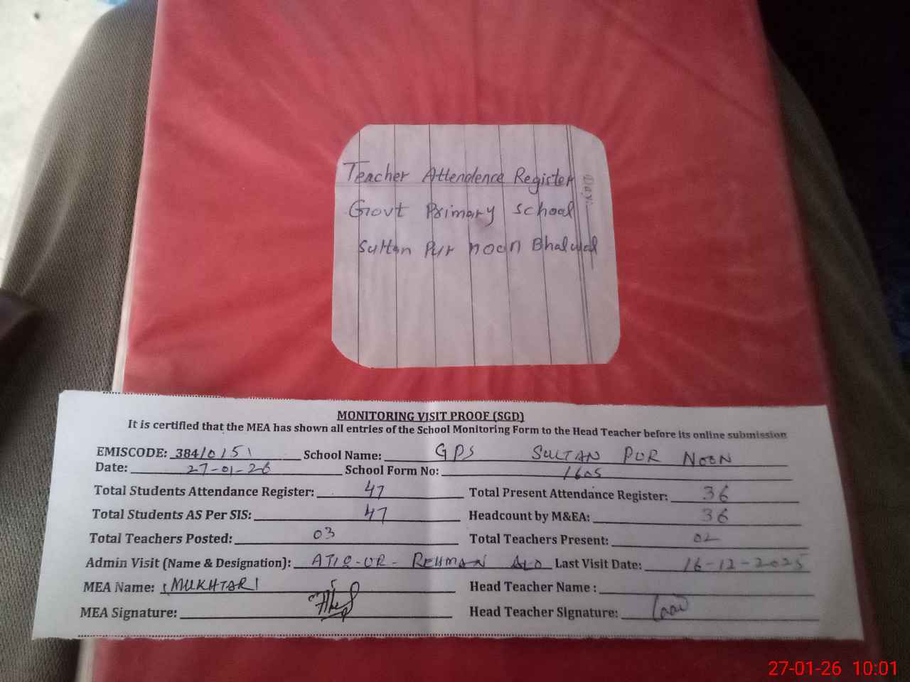 | EMIS Code: 38410151 | Name of School: GPS SULTAN PUR NOON | |||