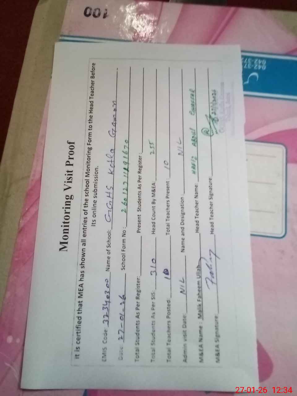| EMIS Code: 32340300 | Name of School: GGHS KOTLA GAMOON | |||