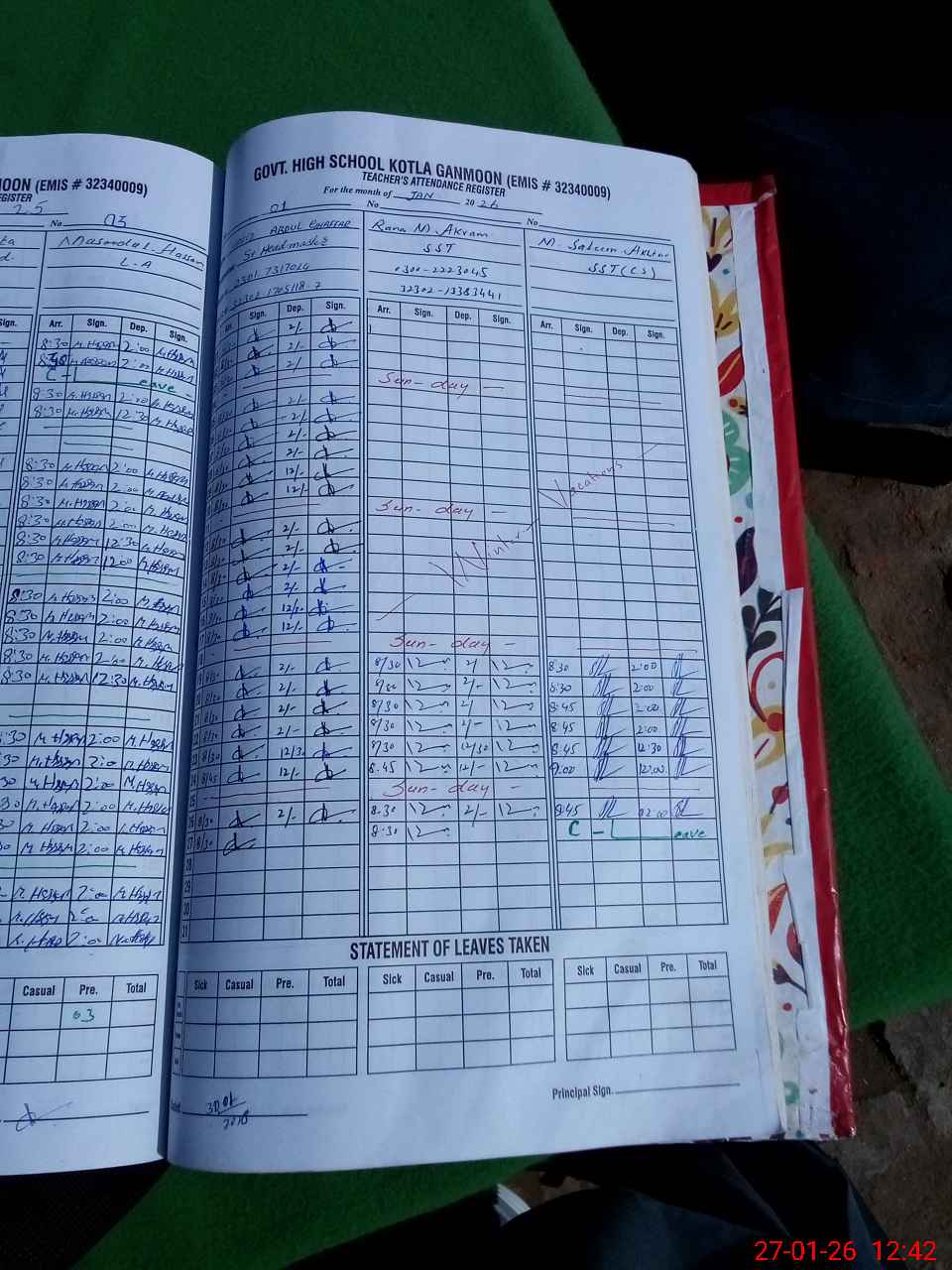 | Name: Mu**** Ak**** Designation: (School Headmaster's/Headmistress's) SST Phone/Cell Number: 03**** |