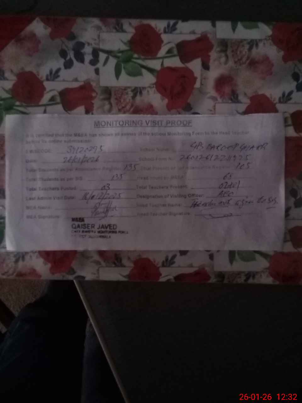 | EMIS Code: 34120295 | Name of School: GPS BAHROOP GHARR | |||
