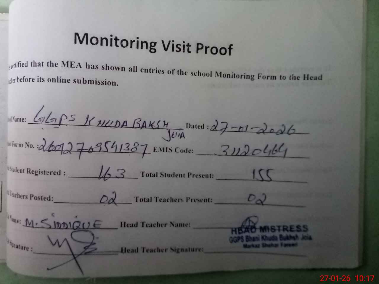 | EMIS Code: 31120464 | Name of School: GGPS KHUDA BAKHSH JOIA | |||