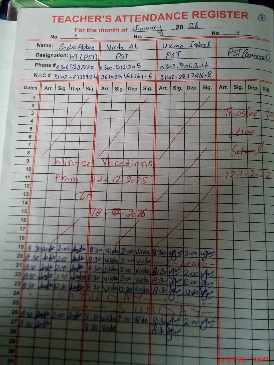 | Name: Sa**** Ab**** Designation: (School Headmaster's/Headmistress's) PST Phone/Cell Number: 03**** |