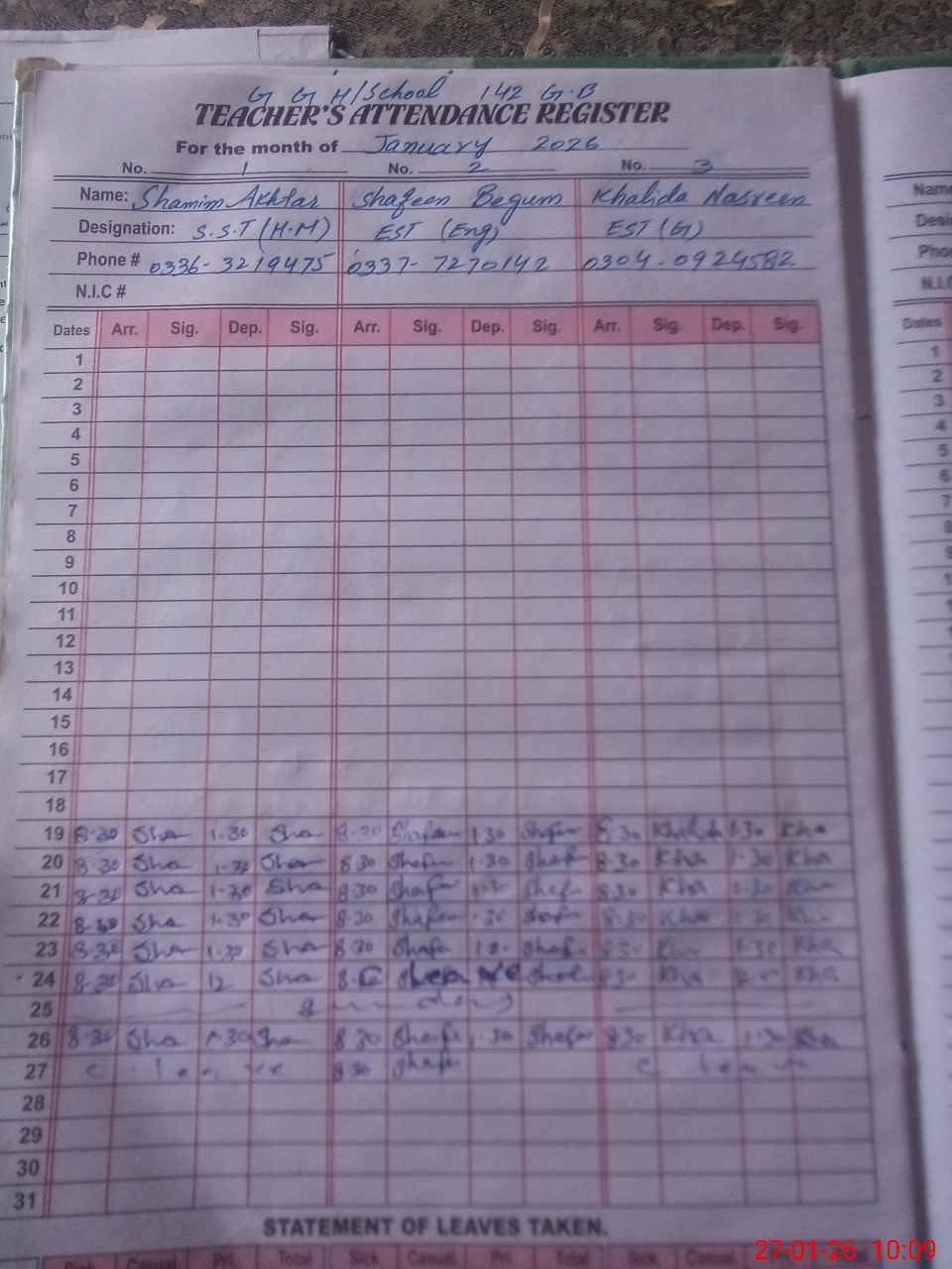 | Name: SH**** AK**** Designation: (School Headmaster's/Headmistress's) S.S.T (GENERAL ) Phone/Cell Number: 03**** |