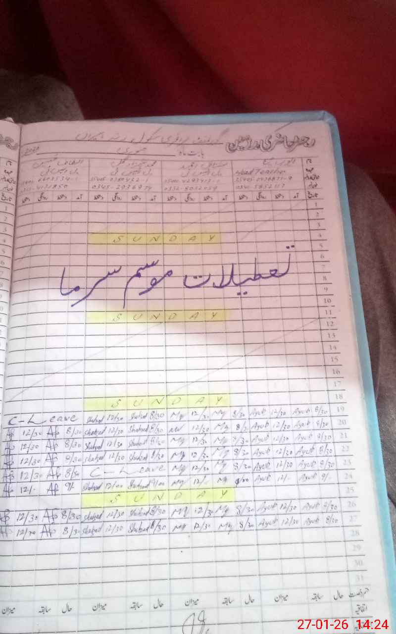 | CNIC | Full Name | Designation | R/C | Absence During Last Calender Month |