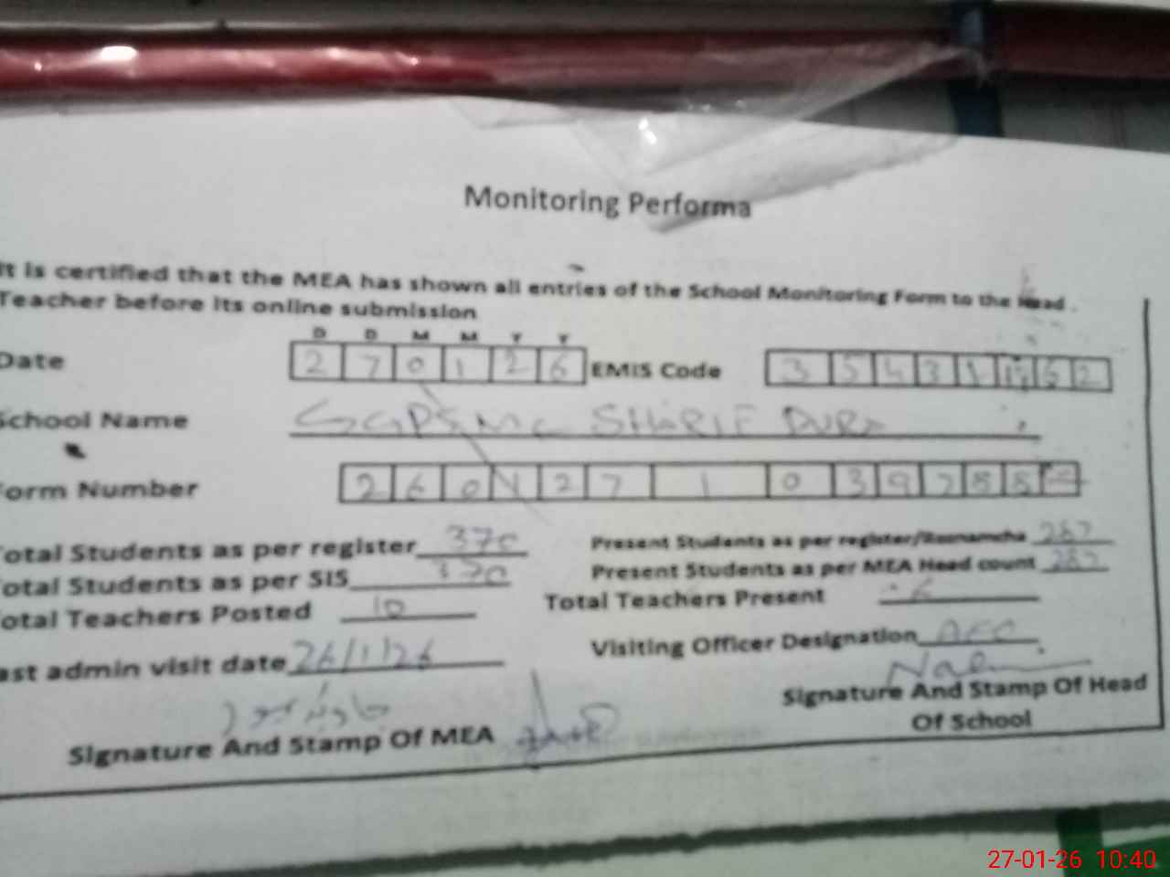 | EMIS Code: 35431162 | Name of School: GGPS MC SHARIF PURA | |||
