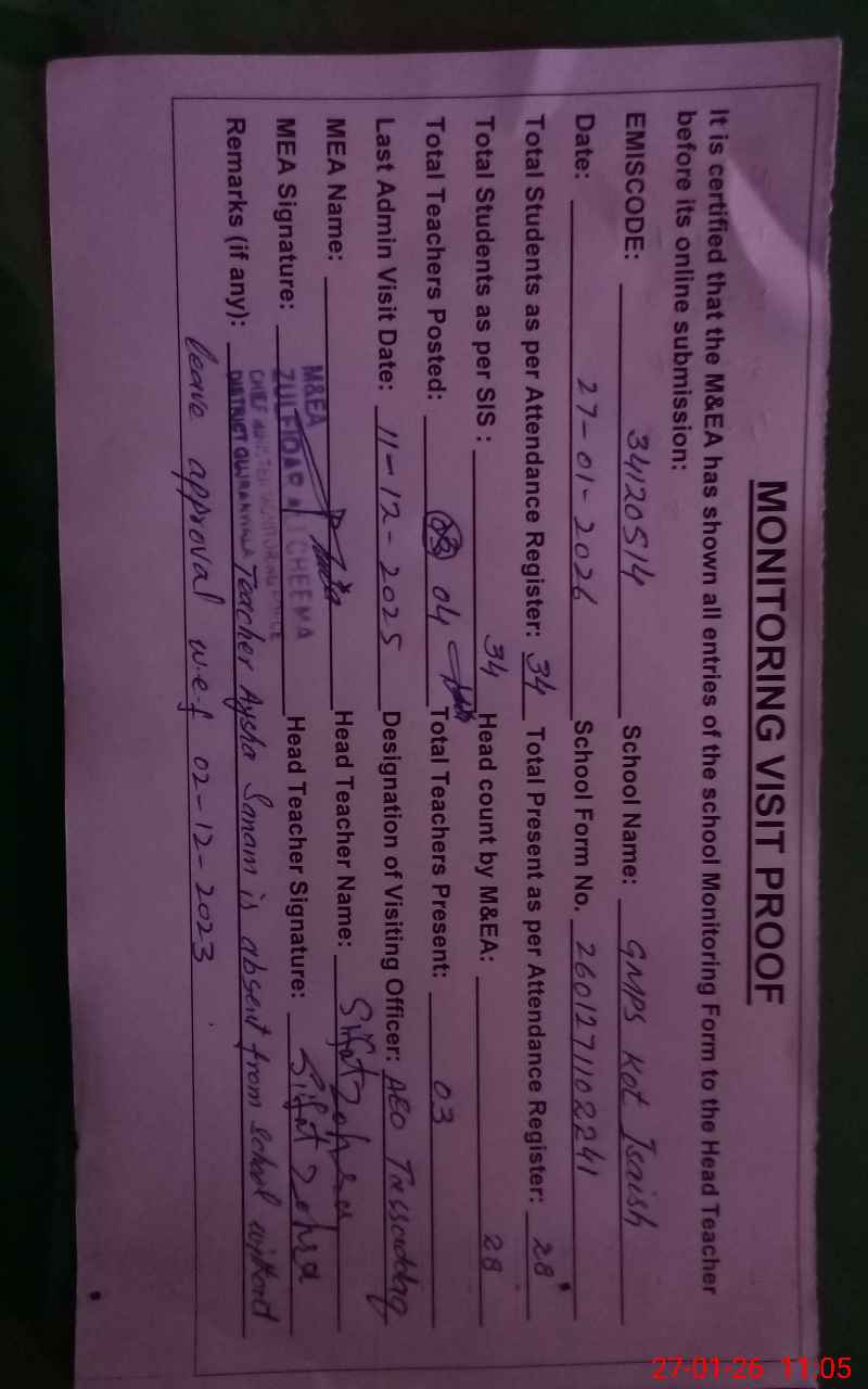 | EMIS Code: 34120514 | Name of School: GMPS KOT ISAISH | |||