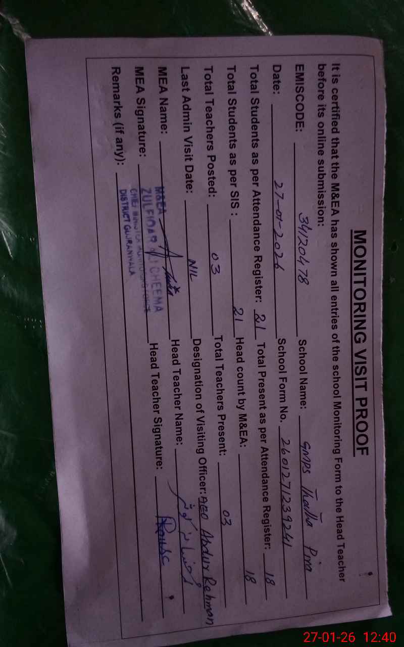 | Certified that this School was Inspected by the Undersigned MEA/DMO Today and the Information Stated Above is as Per Record. | |||||
