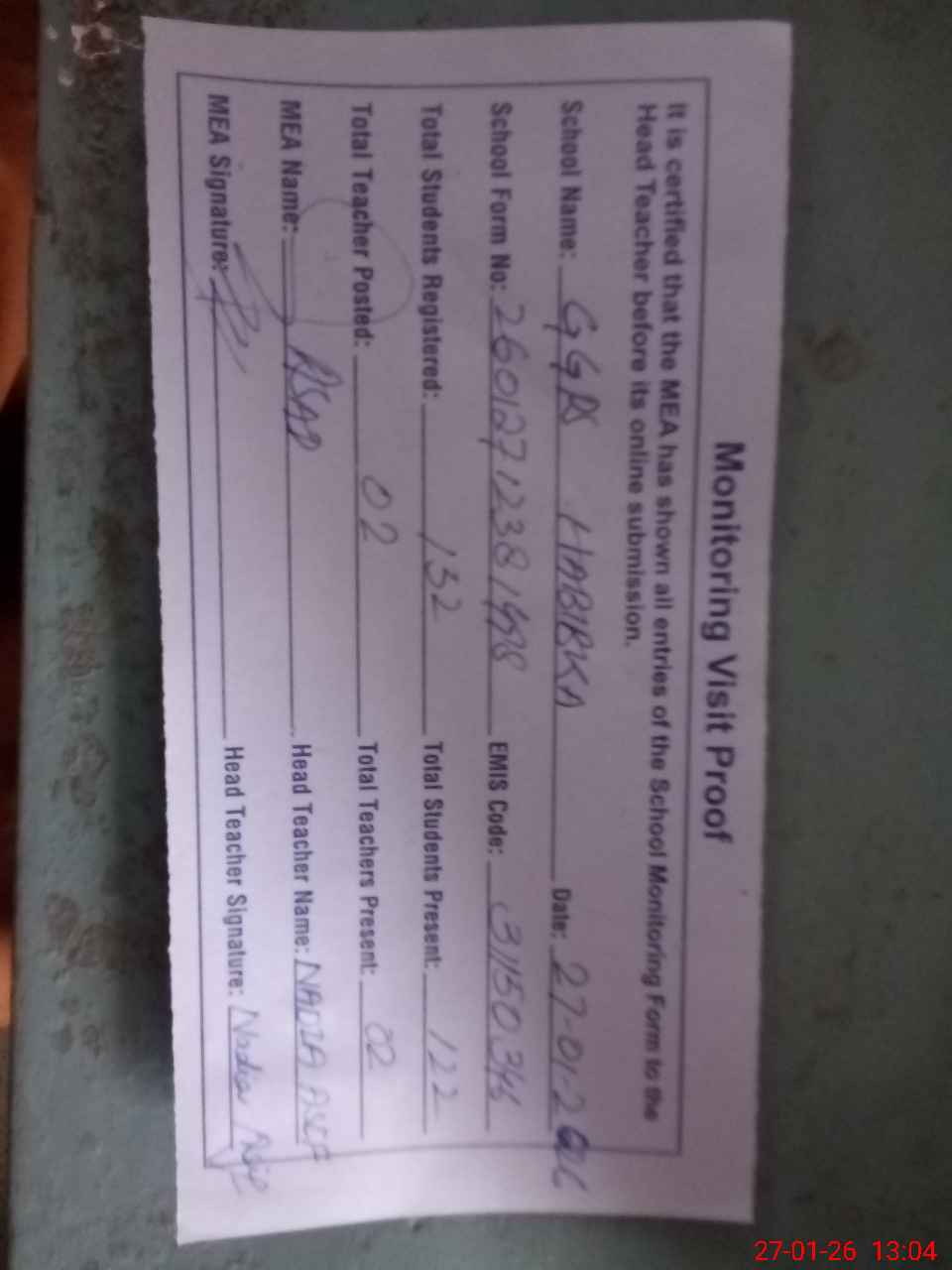 | EMIS Code: 31150346 | Name of School: GGPS HABIB KA | |||