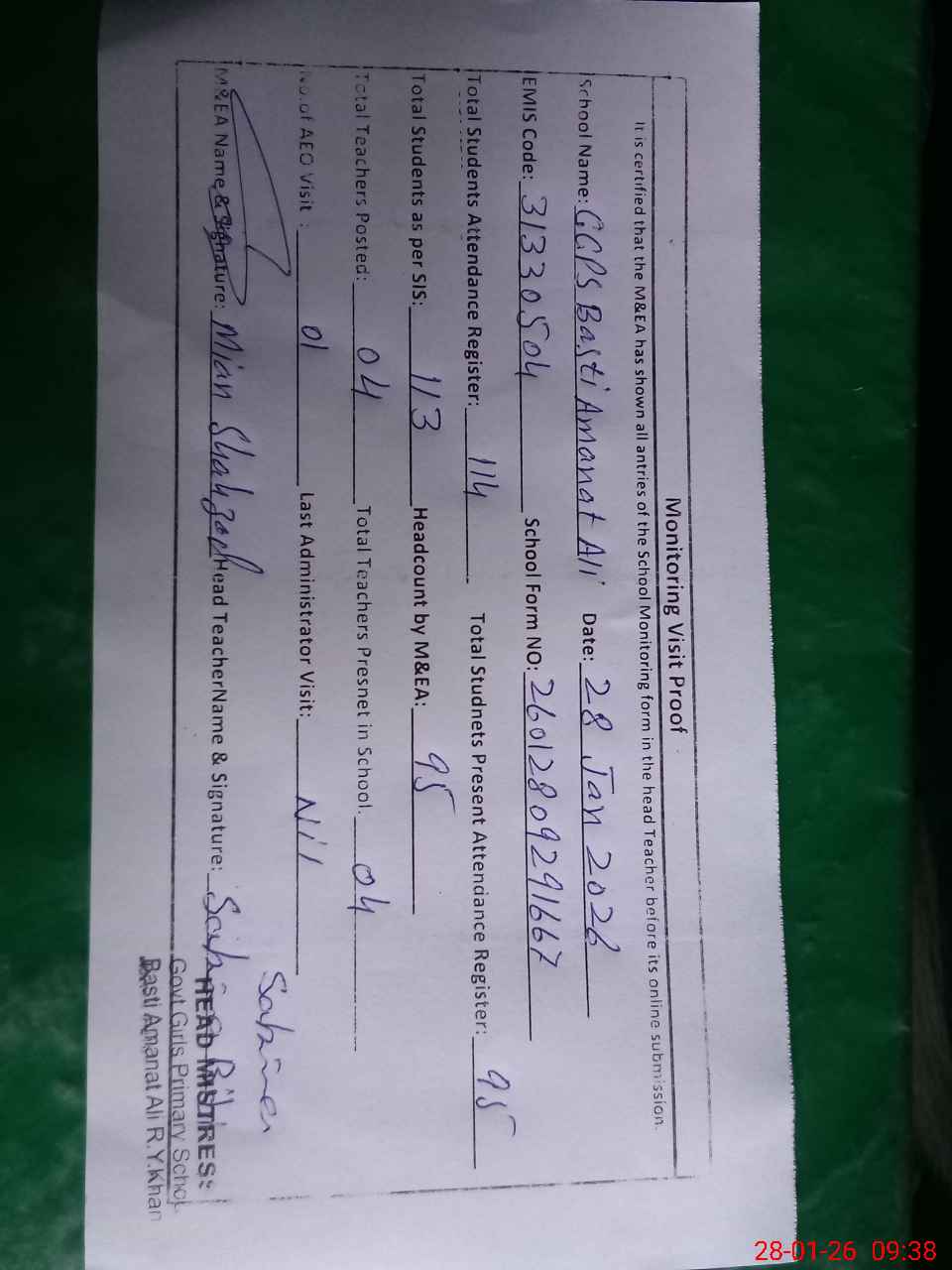 | EMIS Code: 31330504 | Name of School: GGPS BASTI AMANAT ALI | |||