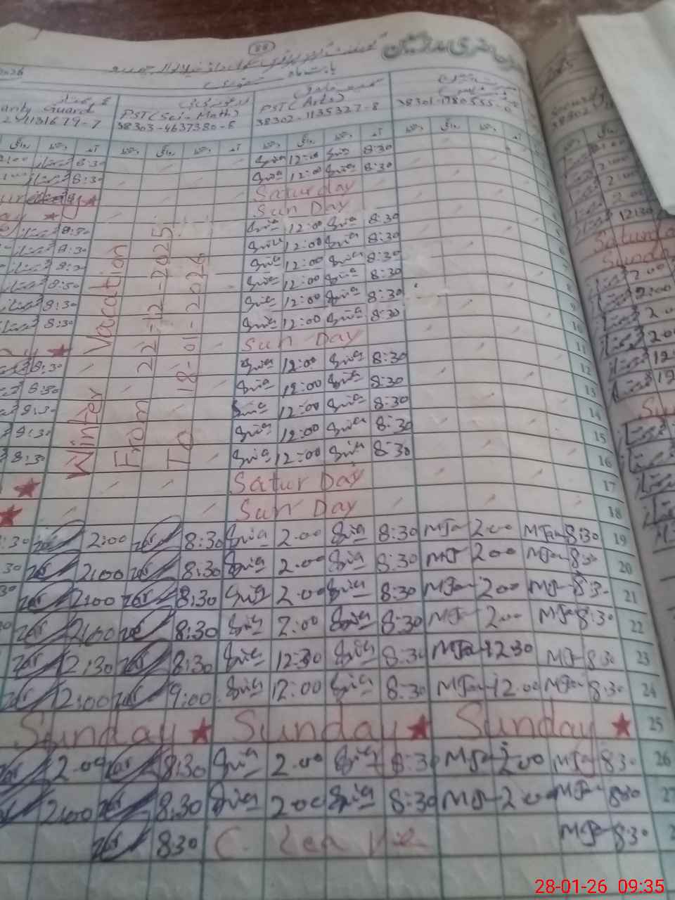| Name: Mu**** Ja**** Designation: (School Headmaster's/Headmistress's) PST Arts Phone/Cell Number: 03**** |