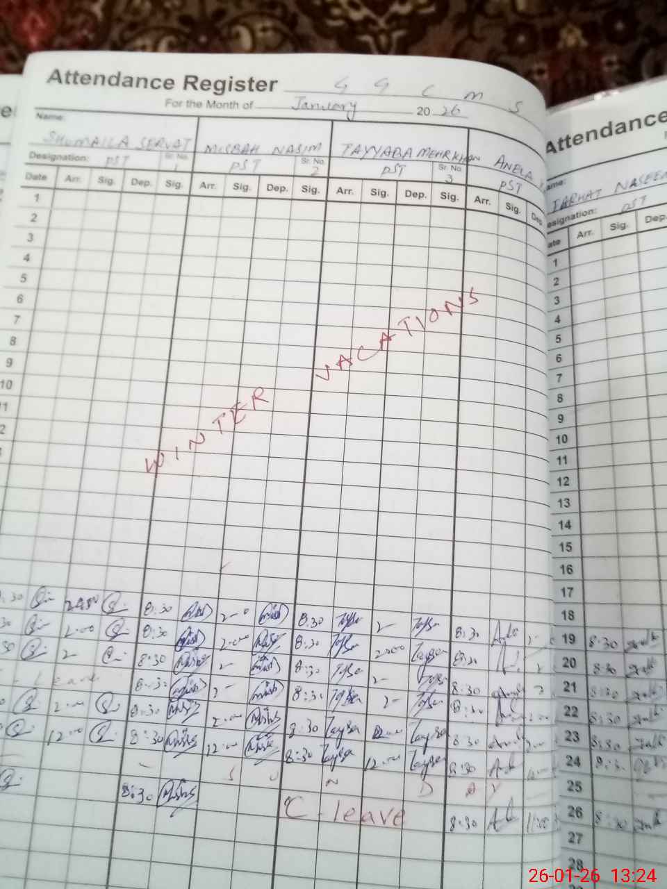 | 37**** | Ta**** Me**** Kh**** | PST Arts | Regular | 0 | 0 | 0 | 0 | 0 | 0 | 0 | 0 | 0 | Absent (Un-Authorized) |