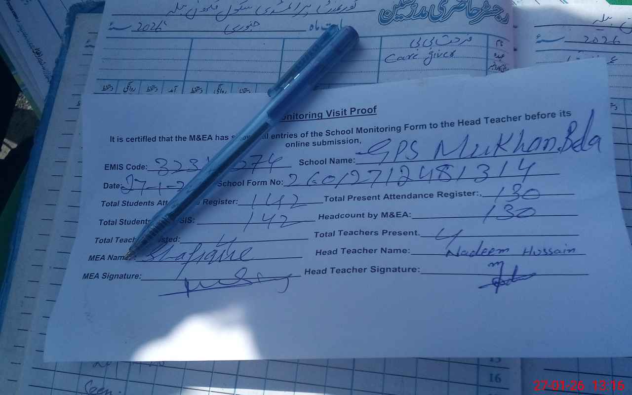 | Attendance Register | Head Teacher | MEA with School | Visit Proof |