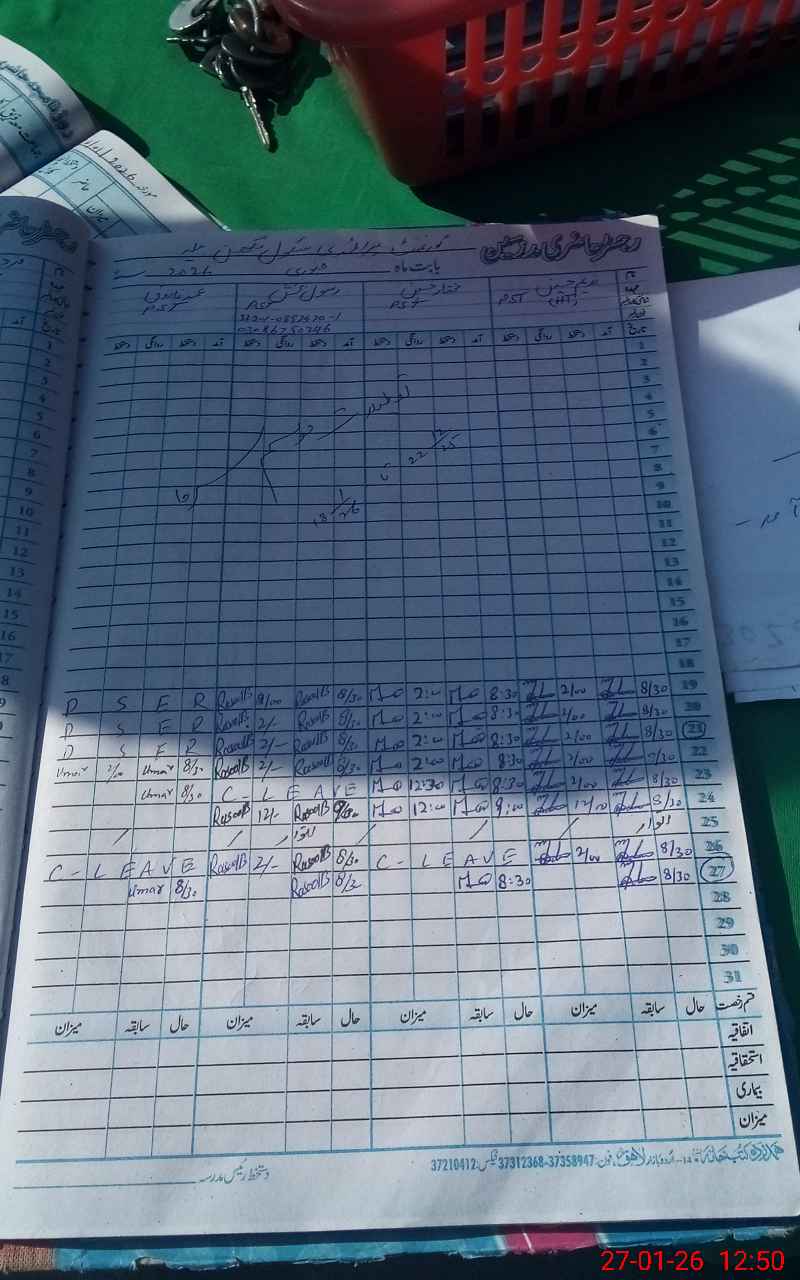 | CNIC | Full Name | Designation | R/C | Absence During Last Calender Month |