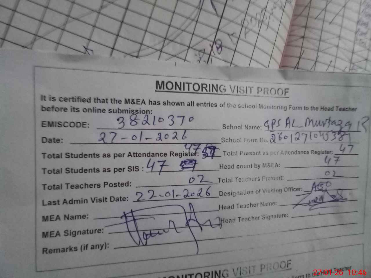 | EMIS Code: 38210370 | Name of School: GPS AL MURTAZA RAJAR | |||