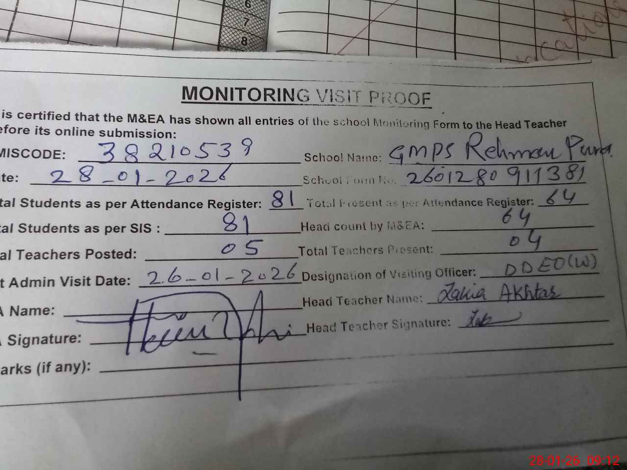 | Remarks (Use Separate Page if Required): last visit by DDEO 26 January 2026 | |||||