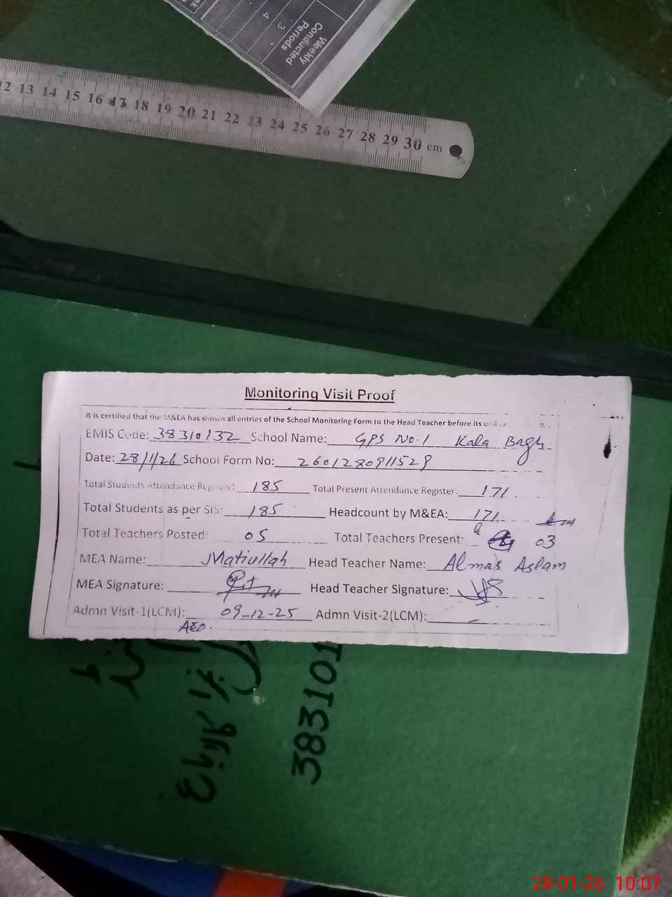 | EMIS Code: 38310132 | Name of School: GPS NO. 1 KALA BAGH | |||