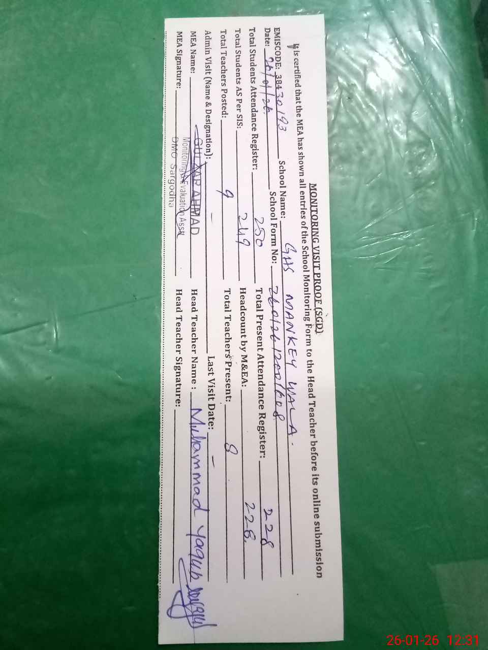 | EMIS Code: 38430193 | Name of School: GHS MANKEY WALA | |||