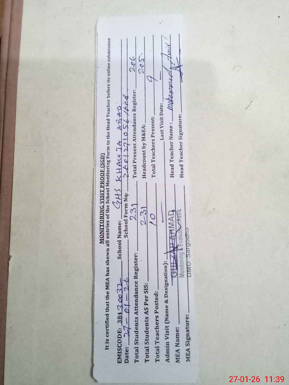 | EMIS Code: 38430032 | Name of School: GHS KHAWAJA ABAD | |||