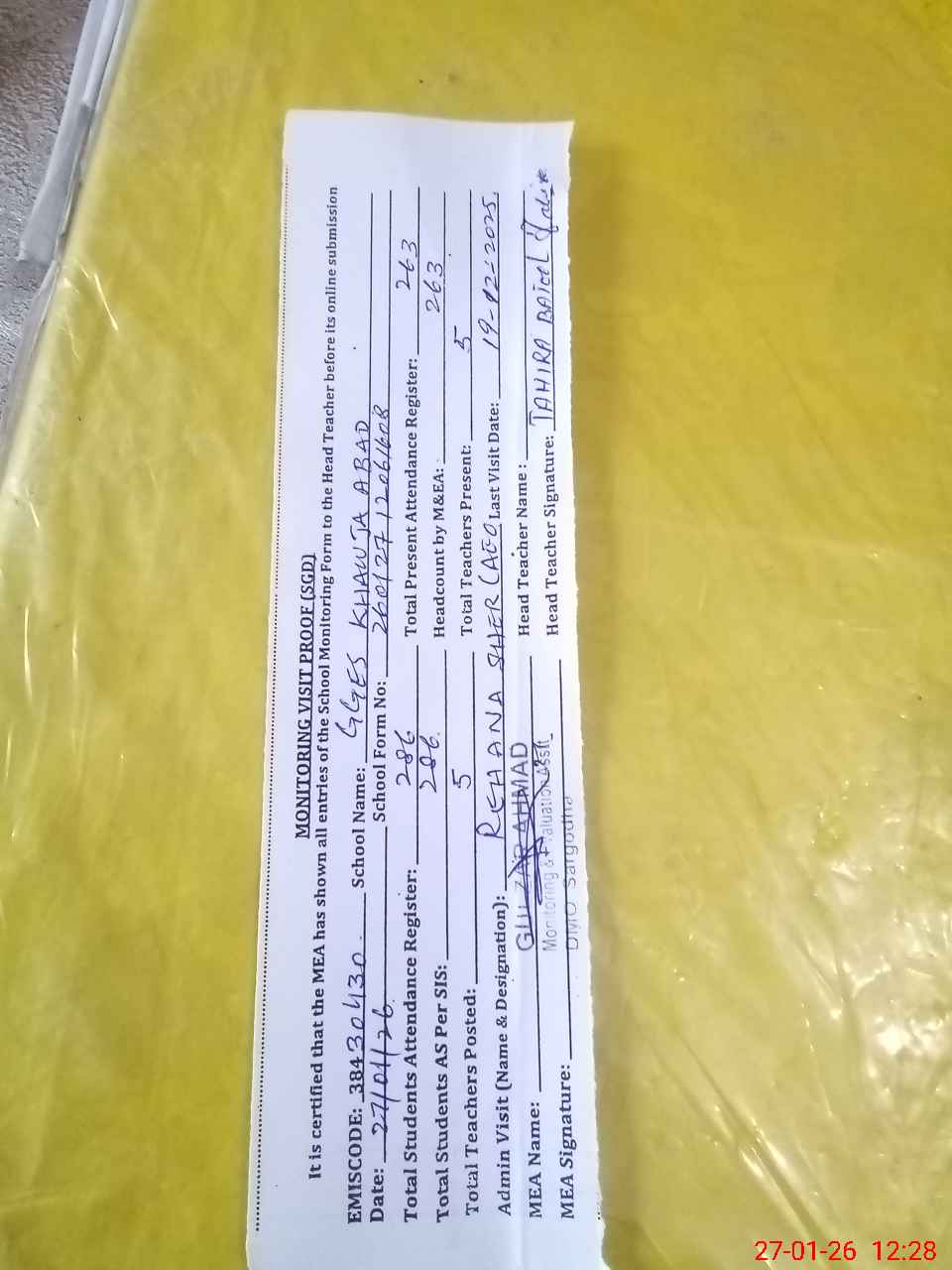 | EMIS Code: 38430430 | Name of School: GGES KHAWAJA ABAD | |||