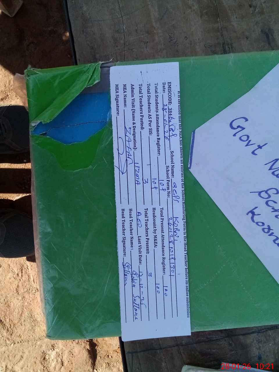 | Attendance Register | Head Teacher | MEA with School | Visit Proof |
