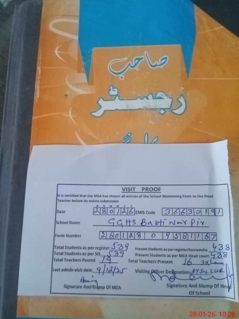 | EMIS Code: 36630191 | Name of School: GGHS BASTI NOOR PIR | |||