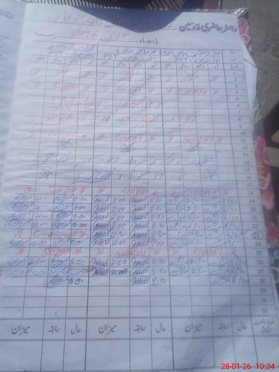 | CNIC | Full Name | Designation | R/C | Absence During Last Calender Month |