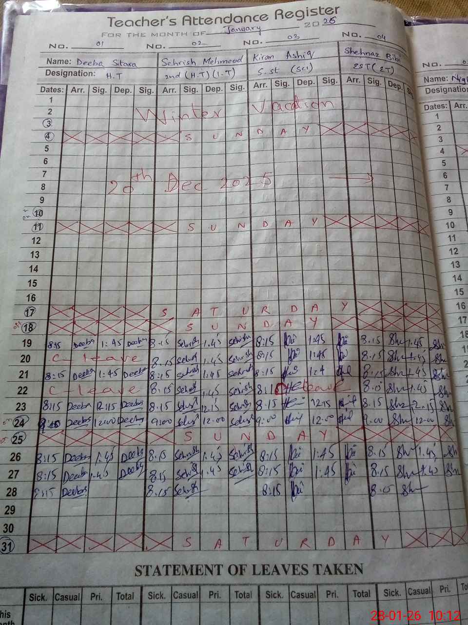 | 37**** | Am**** Ma**** | PST Arts | Regular | 0 | 0 | 0 | 0 | 0 | 0 | 0 | 0 | 0 | Casual |