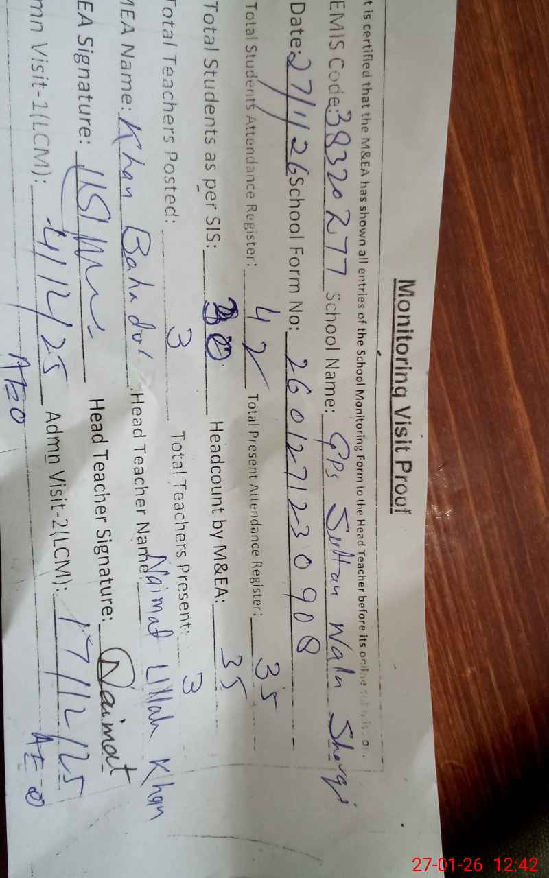 | EMIS Code: 38320277 | Name of School: GPS SULTAN WALA SHARQI | |||