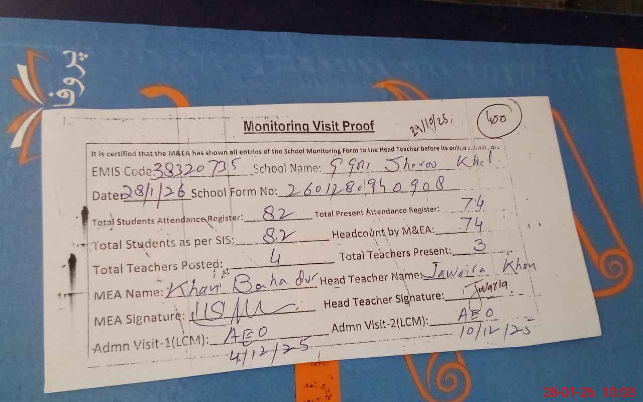 | EMIS Code: 38320735 | Name of School: GGPS SHEROO KHEL WALA | |||