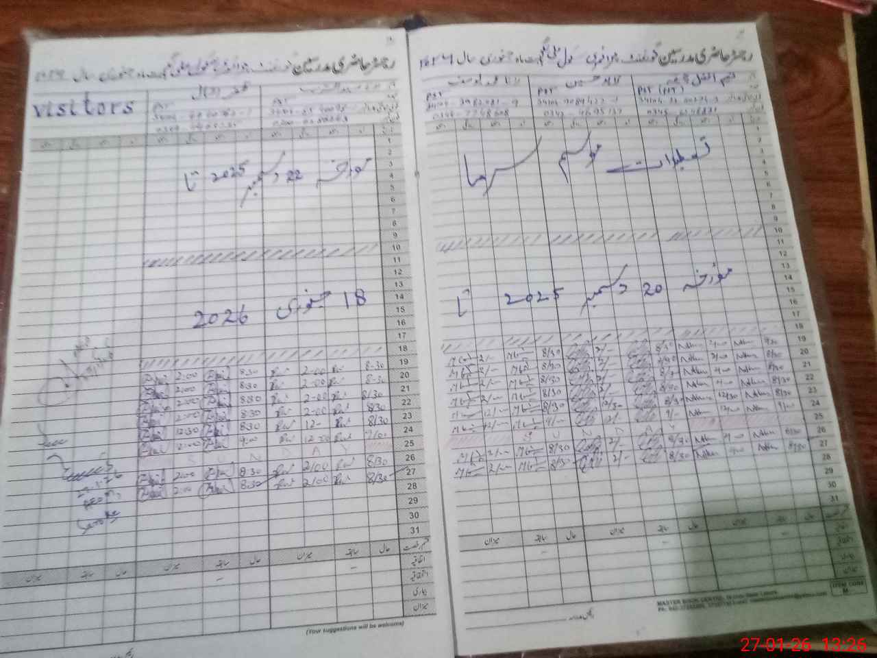 | CNIC | Full Name | Designation | R/C | Absence During Last Calender Month |