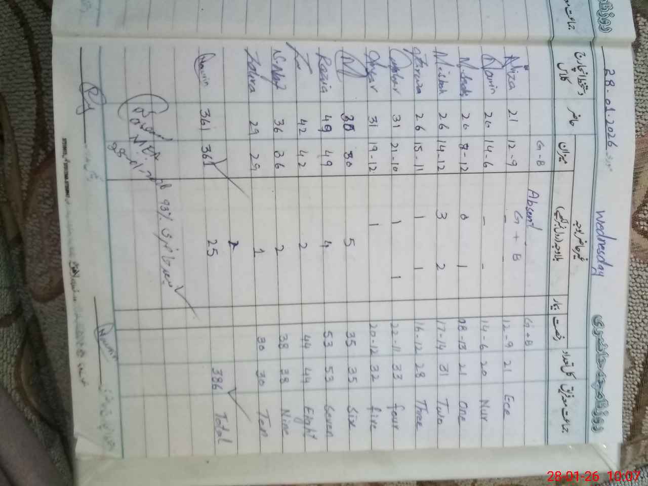 | Total Students Present | 0 | 21 | 19 | 26 | 26 | 31 | 31 | 30 | 49 | 42 | 36 | 29 | 358 | |||