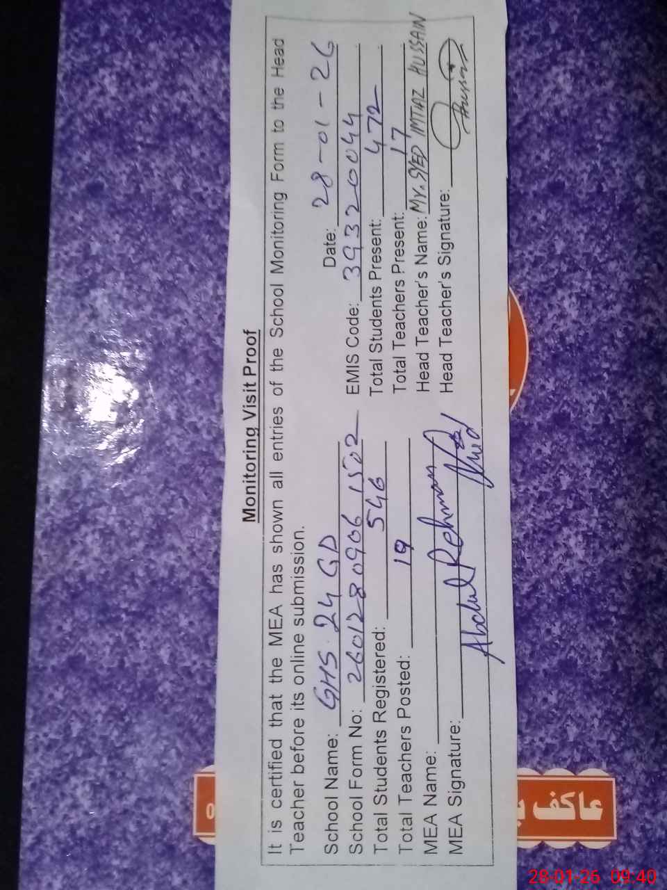 | EMIS Code: 39320044 | Name of School: GHS 24/G.D | |||