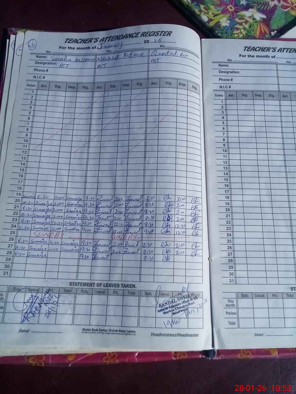 | Name: SU**** KA**** Designation: (School Headmaster's/Headmistress's) PST Phone/Cell Number: 03**** |