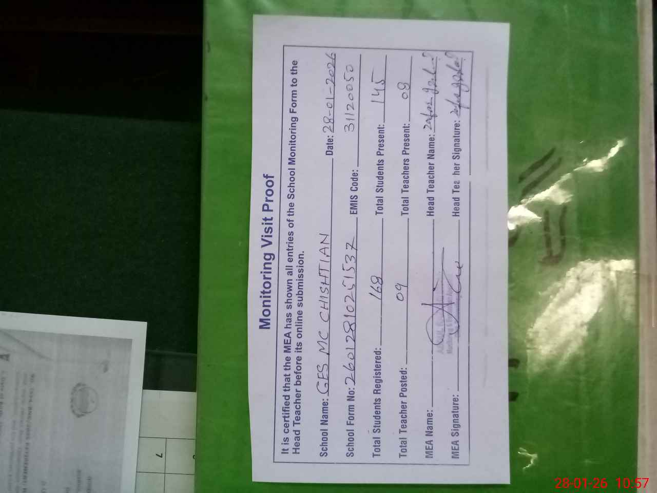 | EMIS Code: 31120050 | Name of School: GES MC CHISHTIAN | |||