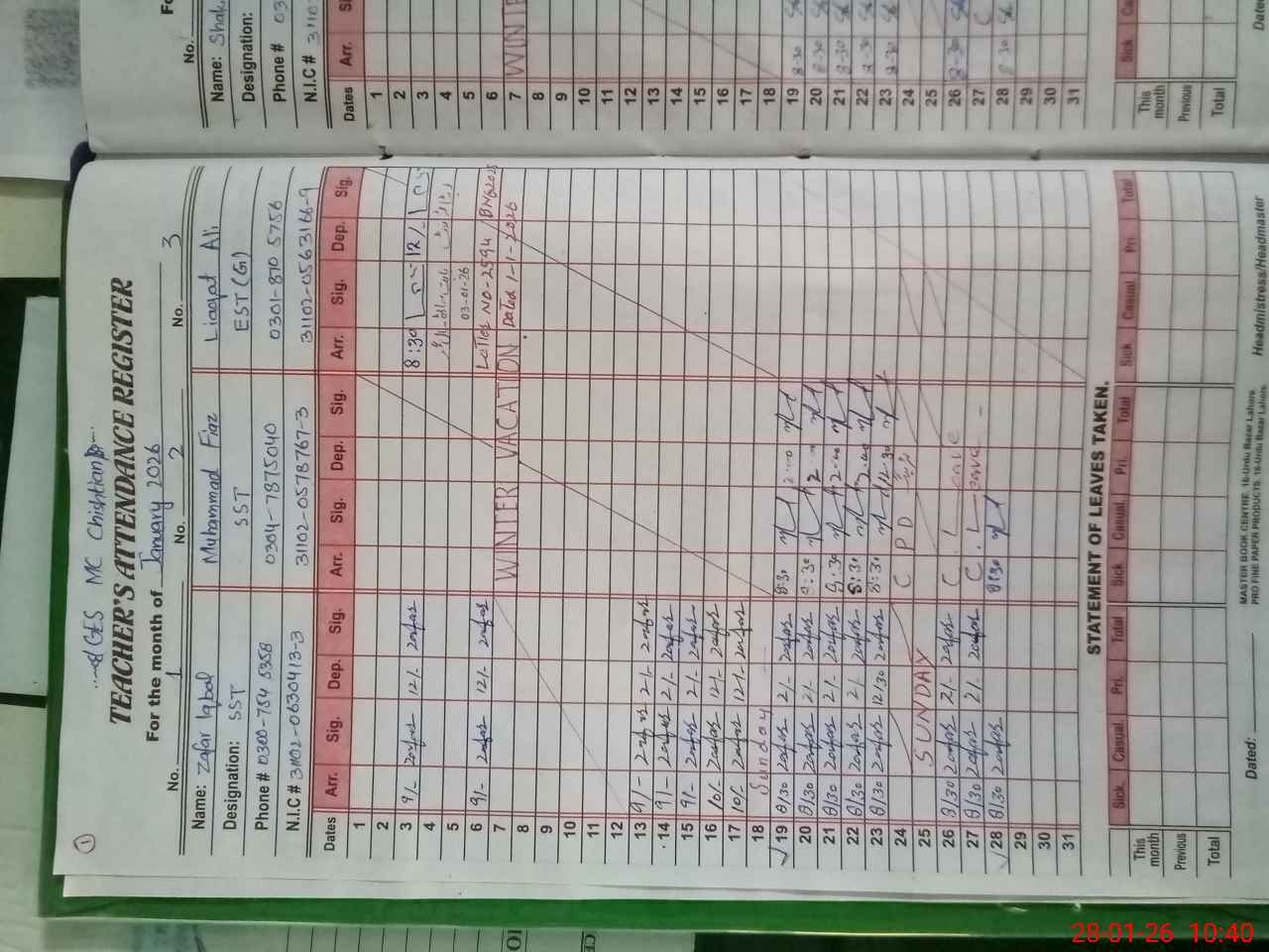 | Name: ZA**** IQ**** Designation: (School Headmaster's/Headmistress's) SST ARTS Phone/Cell Number: 03**** |