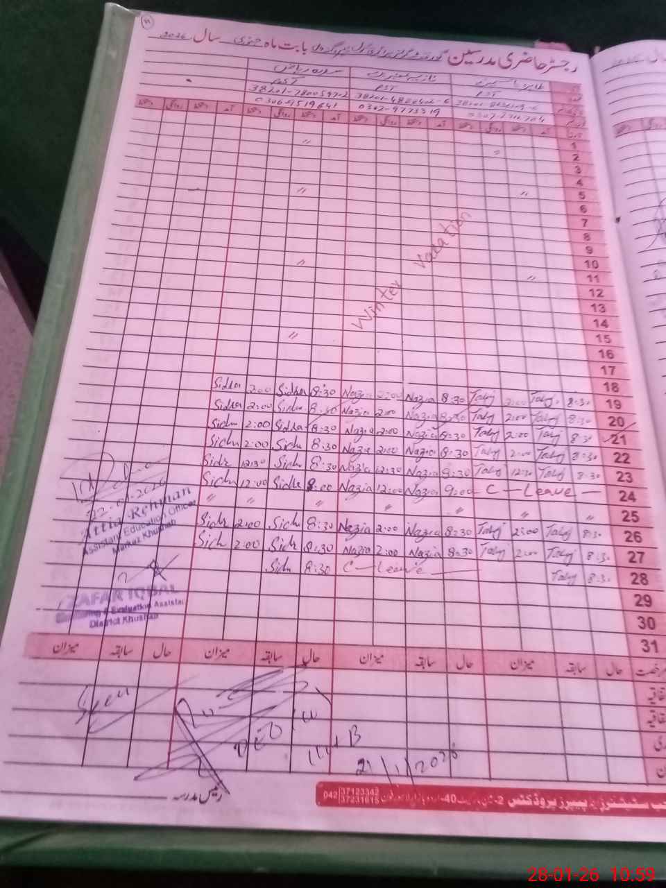 | Name: Si**** Ri**** Designation: (School Headmaster's/Headmistress's) PST Phone/Cell Number: 03**** |