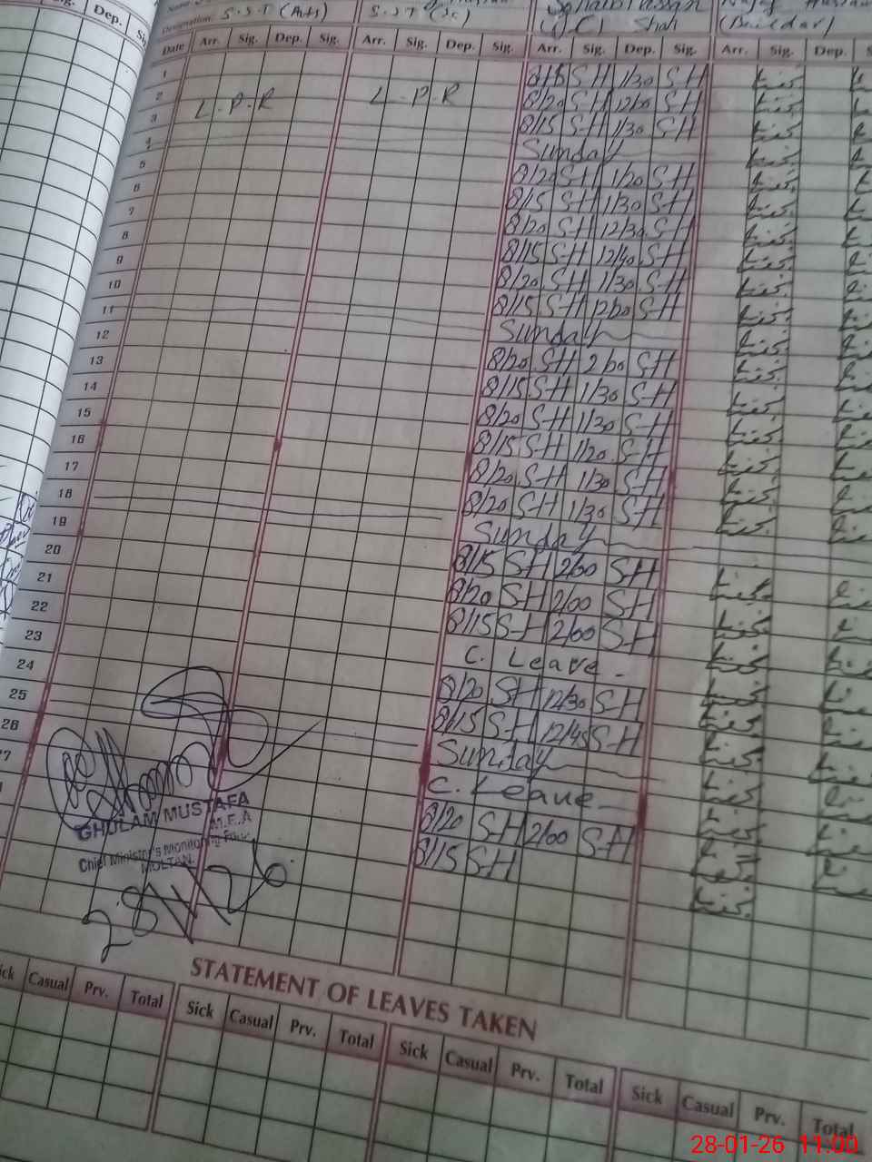 | CNIC | Full Name | Designation | R/C | Absence During Last Calender Month |