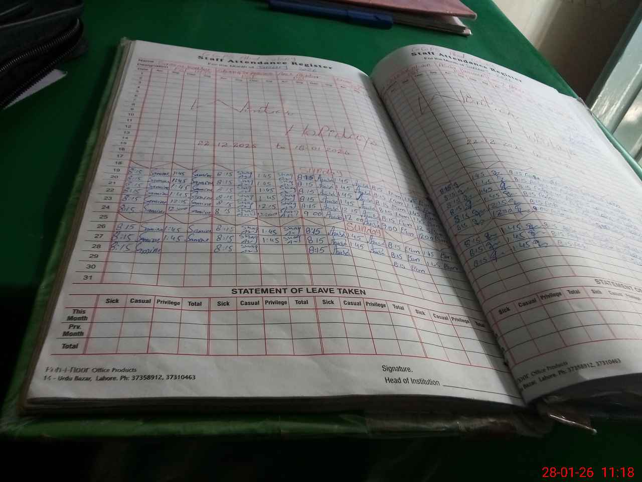 | Leave | Duty | Absent | Maternity | Medical | Ex- Pak |