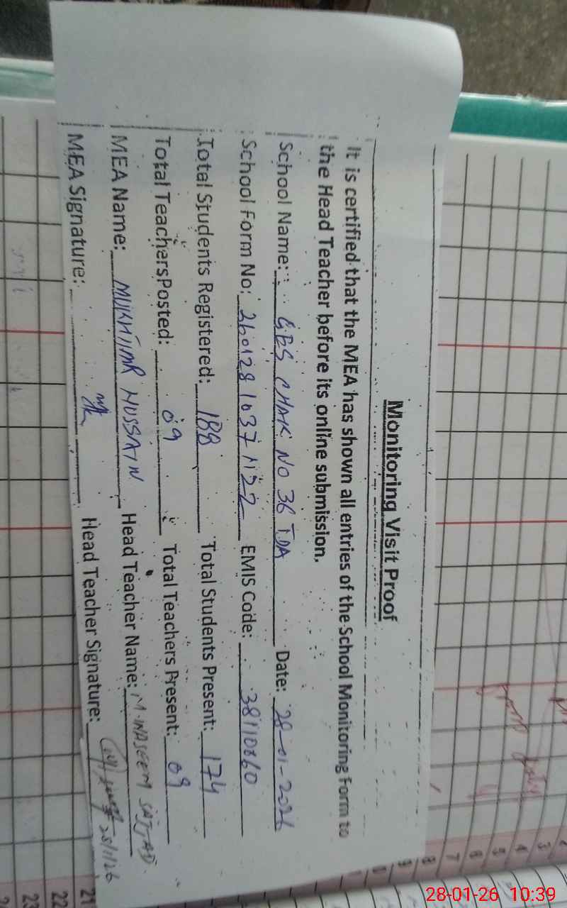 | EMIS Code: 38110060 | Name of School: GES CHAK NO.36 TDA | |||